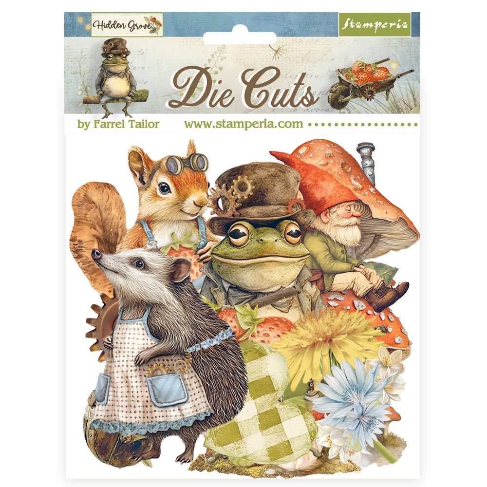 Disfruta de esta colección de Stamperia y toda la variedad de productos que tiene para crear sin límites. Detalles: Die cuts assorted – Hidden Grove