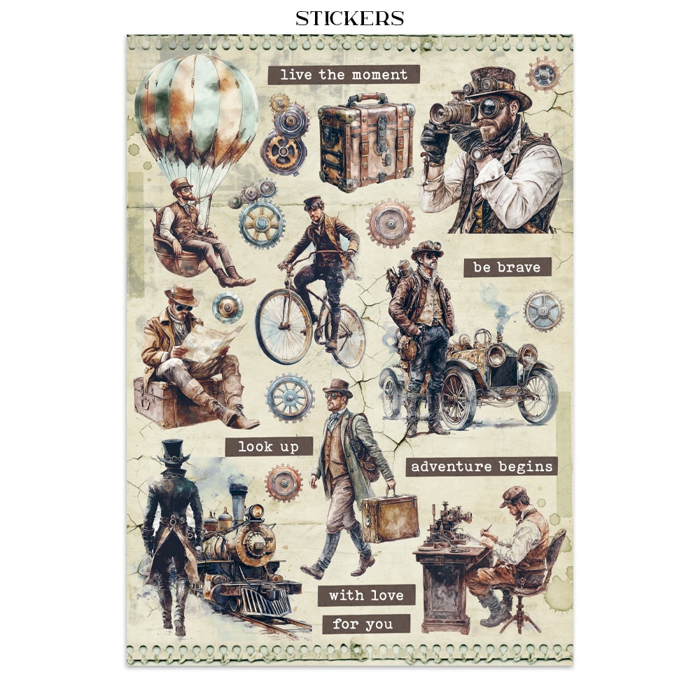 La colección Voyages Fantastiques 25 de Stamperia está inspirada en viajes imaginarios, globos aerostáticos y máquinas de época. Perfecta para crear álbumes, journaling y proyectos de scrapbooking con un estilo vintage y aventurero.