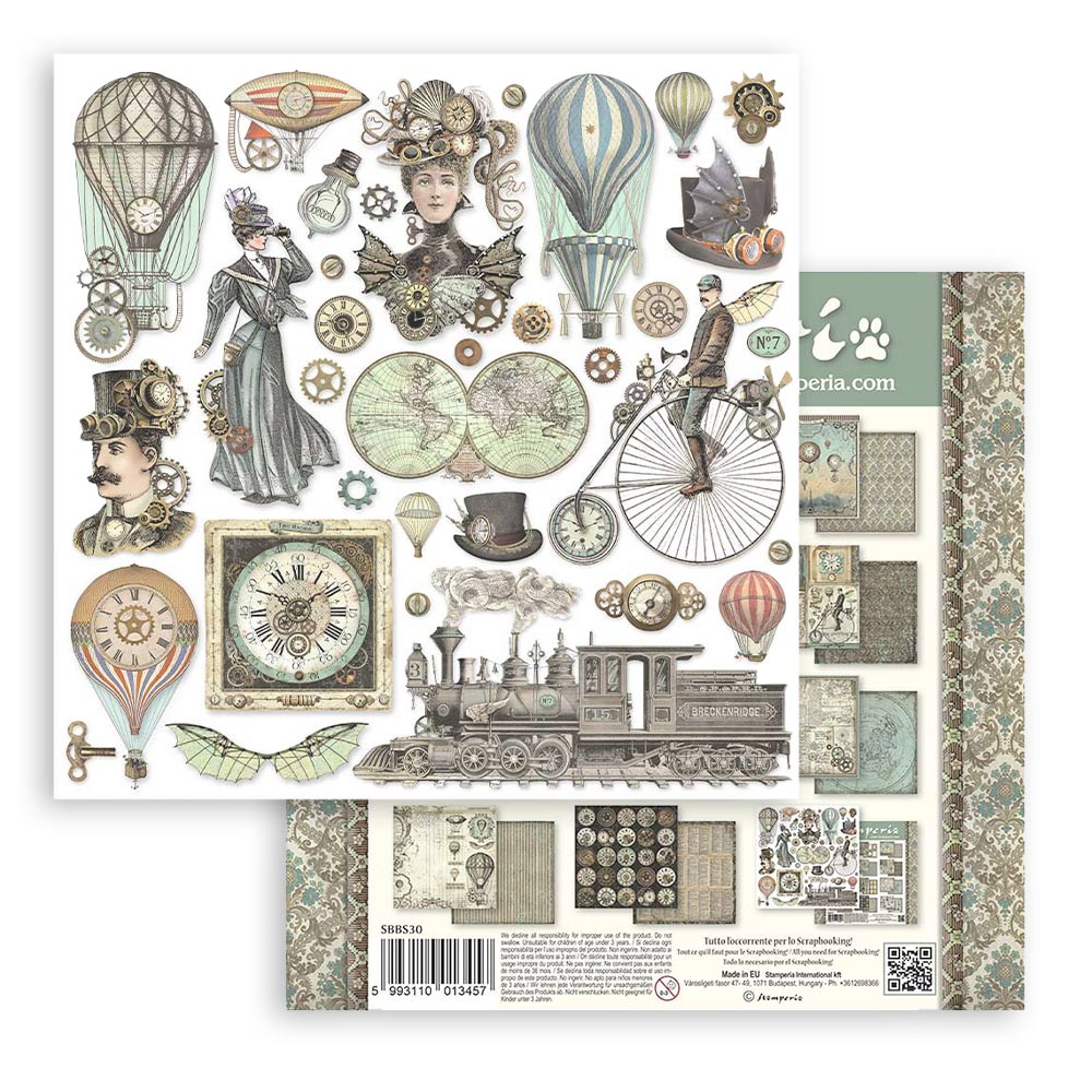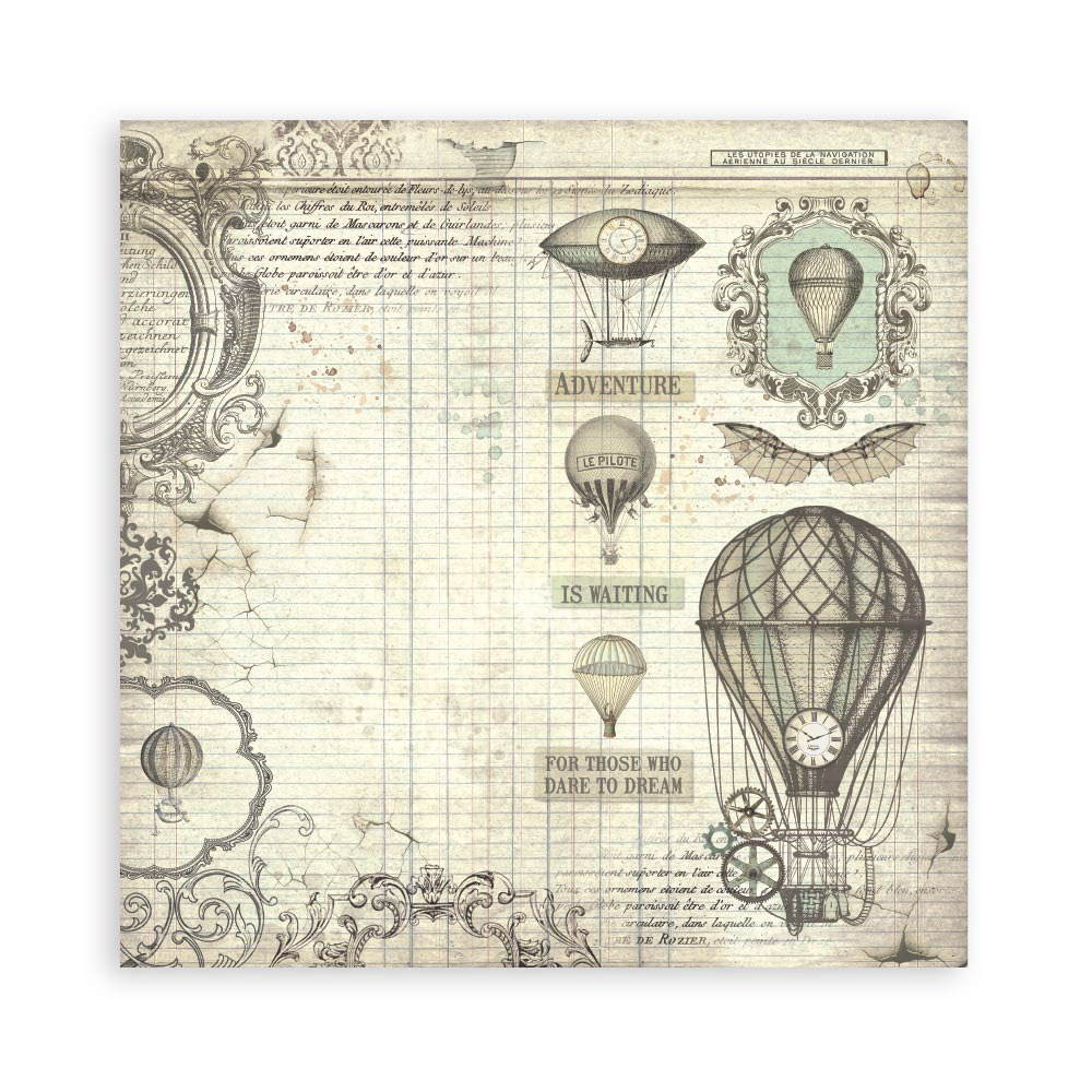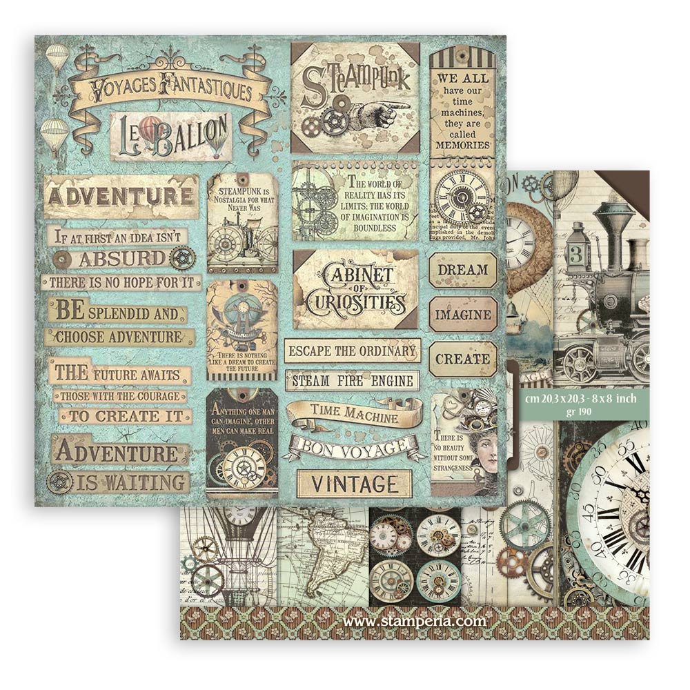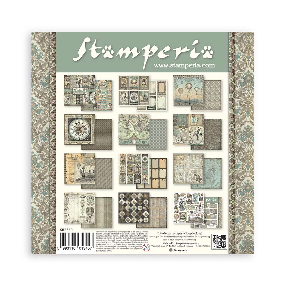 La colección Voyages Fantastiques 25 de Stamperia está inspirada en viajes imaginarios, globos aerostáticos y máquinas de época. Perfecta para crear álbumes, journaling y proyectos de scrapbooking con un estilo vintage y aventurero.