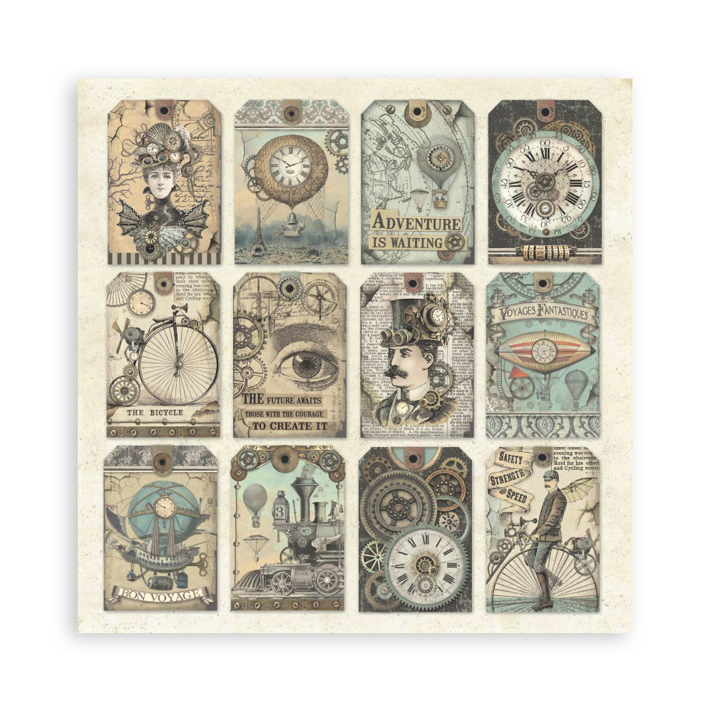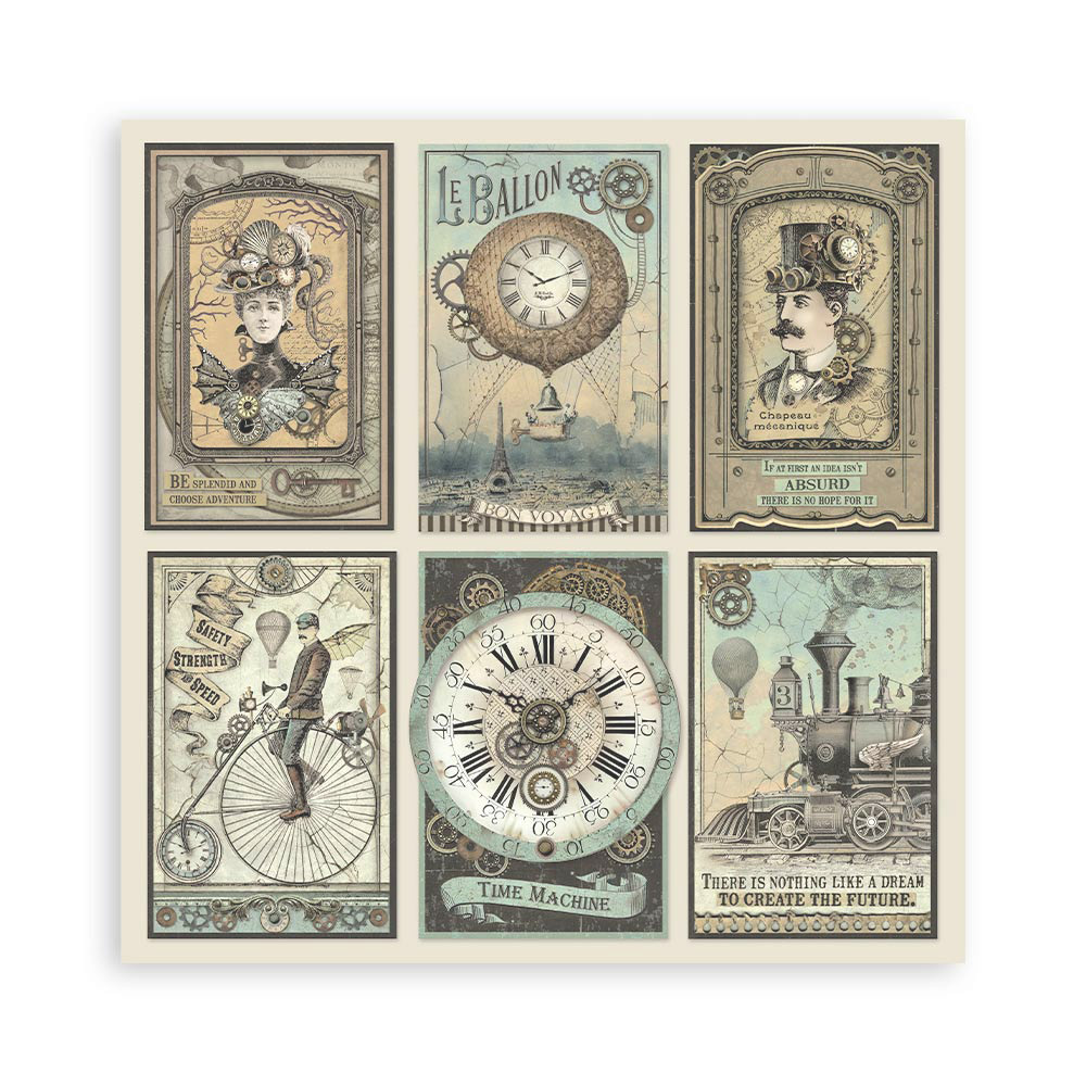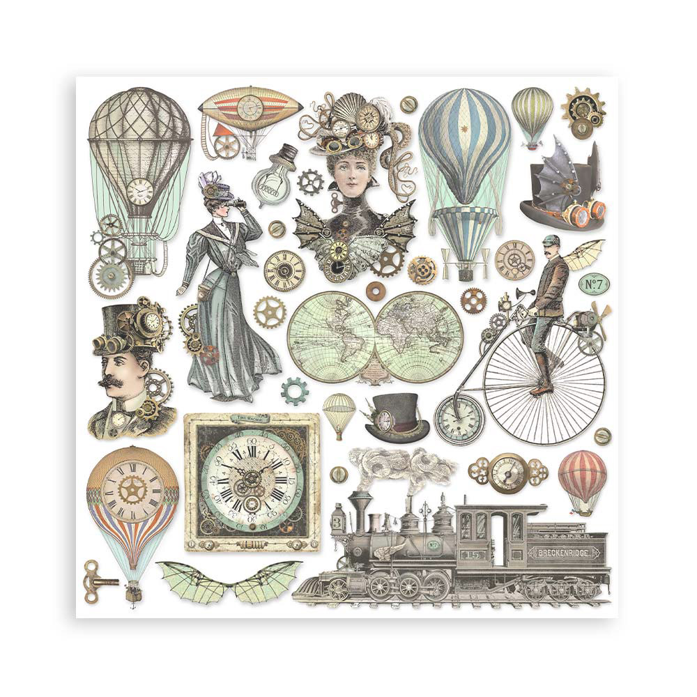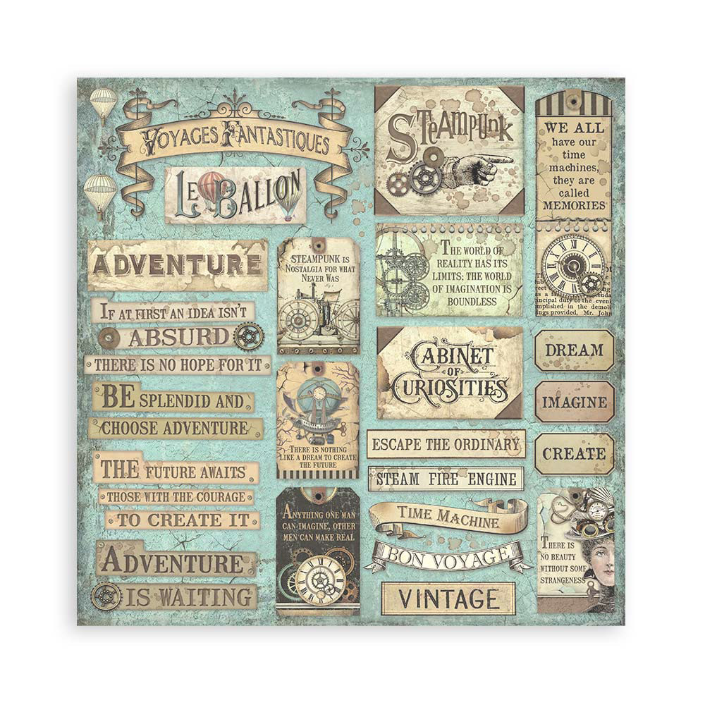 La colección Voyages Fantastiques 25 de Stamperia está inspirada en viajes imaginarios, globos aerostáticos y máquinas de época. Perfecta para crear álbumes, journaling y proyectos de scrapbooking con un estilo vintage y aventurero.