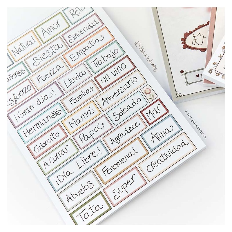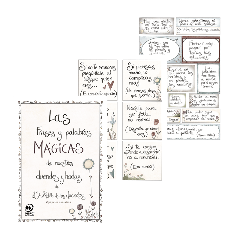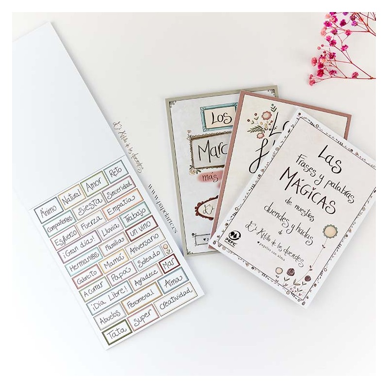 Bloc con frases y palabras mágicas de la marca El Altillo de los duendes para recortar o utilizar la página entera. Puedes utilizarlas en tu bullet journal, agenda, proyecto de scrap o para decorar tu project life, etc.